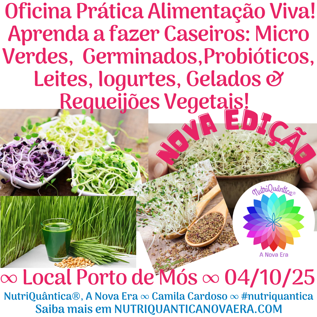 Venha para a alquimia do caldeirão da Nutrição Holística. Numa alimentação mais VIVA! Vamos aprender a desintoxicar, fazer queijos e leites vegetais, germinar, fermentar, integrar mais ervas, aromáticas e plantas selvagens, montar mandalas de alimentos vivos e cheios de energia vital, além de aprender a aromatizá-los e degustá-los com outra consciência! Iremos aprender um novo estilo de vida! Um saber que trás iluminação para dentro do nosso ser, nos tornamos unos com a vitalidade presente na consciência universal, da qual jamais nos devíamos ter separado!